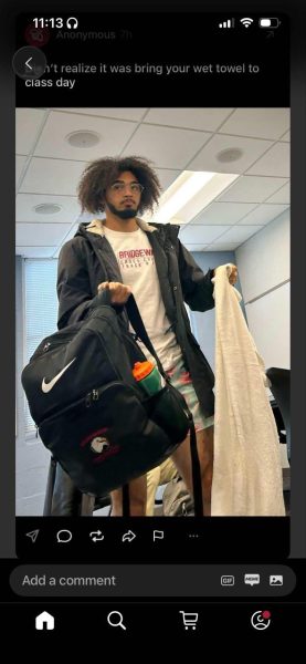 BRIDGEWATER, Va. – He rushes from practice to his next class, still in his swimsuit and carrying the towel he used to dry off. Hours later, his teammate texts him a screenshot from Fizz: an unsolicited photo of him in class, captioned, “Didn’t realize it was bring your wet towel to class day.”